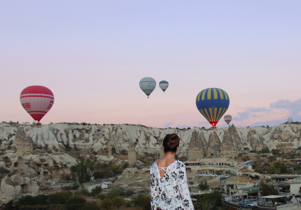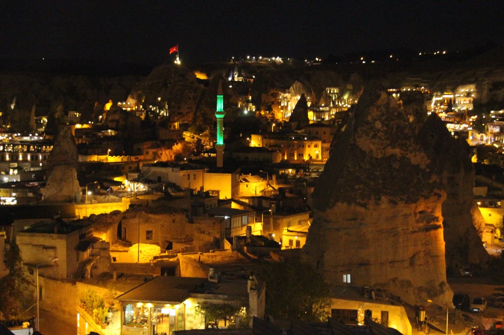 Göreme’de, sabahın erken saatlerinde gökyüzünü donatan rengarenk balonlar ve akşamları ışıklandırılmış peribacaları, insana içinden çıkmak istemediği bir masal diyarı hissini veriyor. Bölgenin muhteşem doğasını gökyüzünden izlemek ve bölgeyi heyecan verici bir tecrübeyle keşfetmek için katılabileceğiniz balon uçuşlarının başlangıç noktası genellikle Göreme civarında. Sabahın erken saatlerinde başlayan uçuşlar bambaşka güzellikte bir gün doğumu deneyimi de yaşatıyor. Sadece izlemek isterseniz, Aydın Kırağı ya da Aşıklar Tepesi, hem havalanan balonları hem de güneşin doğuşunu izlemek için buradaki en güzel konum. Bölgede en güzel fotoğraf karelerinin alındığı yerlerde, özellikle balonların havalandığı zamanda, turistlerin orada temin edilen kostümlerle profesyonel fotoğrafçılara fotoğraflar çektirmeleri de çok yaygın bir durum. Ayrıca oteliniz, başka hiçbir yere gitmeyip, balonların ilk havalanışlarından itibaren, elinizde sıcak bir fincan çay ya da kahveyle bu muhteşem manzarayı izleyebileceğiniz bir konumda olabilir. Bu sefer konakladığımız, Göreme’deki Kelebek Otel’in sunduğu konforlardan biri de buydu. Peribacalarına ve kayalara oyulmuş odalarıyla, yöresel tarzda tasarlanıp dekore edilmiş mağara otelin yapım aşamasında gösterilen titizlik, şu anda işletilmesinde de devam ediyor. Sabah kahvaltılarına eşlik eden muhteşem Göreme manzarası, akşamları yerini ışıklar içindeki gece manzarasına bırakıyor.