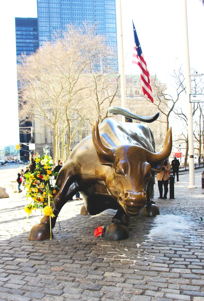 ABD’nin en büyük aracı kurumlarının ve yatırım bankalarının tarihi merkezi, aynı zamanda New York Menkul Kıymetler Borsası’nın evi, namı dünyanın her tarafına ulaşmış olan Wall Street de bu bölgede Broadway’den başlayarak South Street’e kadar uzanıyor. New York Menkul Kıymetler Borsası binasının karşısında, elleri belinde, saçı at kuyruğu, dik başlı bir edayla dikilerek binaya bakan yaklaşık yüz otuz santimetre boyundaki bronz heykelin adı “Fearless Girl” (Korkusuz Kız). Heykel, üst düzey liderleri arasında nispeten yüksek bir kadın yüzdesine sahip, cinsiyet eşitliği olan şirketlerin oluşturduğu bir endex fonunun reklamını yapmak için dikilir ama bence Wall Street’in kadın “Canavar”larına bundan daha güzel bir gönderme olamazdı. Yakınında, Bowling Green’de yer alan “Charging Bull” heykelinin etrafı günün her saati fotoğrafını çekmek isteyen çok sayıda turistle çevrili. Yedi tonluk bronz agresif boğa heykeli, güç ve zenginliğe açık bir övgü. “Fearless Girl”, daha önce bu boğa heykelinin önünde dikilir şekilde yerleştirilmiş ama sonradan boğa heykelinin heykeltraşı Arturo Di Modica’nın itirazı üzerine kaldırılıp mevcut yerine taşınmış. Kaldırıldığı yerde iki küçük ayak izinin bulunduğu bronz kaide hala duruyor ve üzerinde şöyle yazıyor: “O orada olana kadar onun yerine geç.”