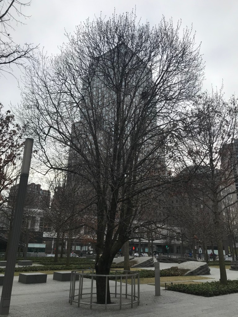 Staten Adası’ndan dönüşte Ulusal 11 Eylül Anıtı ve Müzesi’ni ziyaret etmek üzere, feribot iskelesinden yaklaşık on beş dakika sürecek bir yürüyüşe başlıyorum. İkiz kulelerin yokluğunu temsil eden şelaleli iki girintili havuz ve etrafını çevreleyen ağaçlardan oluşan parkın tasarımcıları, açılan yarışmanın kazananları olan Michael Arad ve Peter Walker. Şelaleleri çevreleyen duvarların üzerine yazılmış kurbanların isimleri arasında sadece kulelerde olanlar değil, Pentagon ve kulelere çarpan uçaklarda hayatını kaybedenlerin de isimleri var. Şelalelerin şehrin seslerini susturması ve alanı bir düşünme mabedi haline getirmesi amaçlanmış. Parkın etrafı çitle çevrili ünlü ağacı “Surviver Tree”, adını yaşama dönüşüyle gösterdiği mucizeden alıyor. Enkazdan çıkarılan bu armut ağacı ortaya çıktığında kötü bir şekilde yanmıştır ve yaşayan sadece bir dalı vardır. Ağaç, New York Şehri Parklar ve Rekreasyon Departmanı tarafından bakıma alınmak üzere Bronx’daki bir fidanlığa taşınır. Ağacın hayatta kalması beklenmez ancak bir sonraki baharda büyüme belirtileri gösterir. 2010’da şu anda bulunduğu anıt parktaki yerine dikilen ağaç, saldırılardan sonra sebat eden binlerce hayatta kalanı hatırlatarak umudun ve yeniden doğuşun sembolü olur. Yeni kule “One World Trade Center” ise Dünya Ticaret Merkezi kompleksinin geri kalanıyla birlikte yıkılan ikiz kulelerin yerini almış durumda.