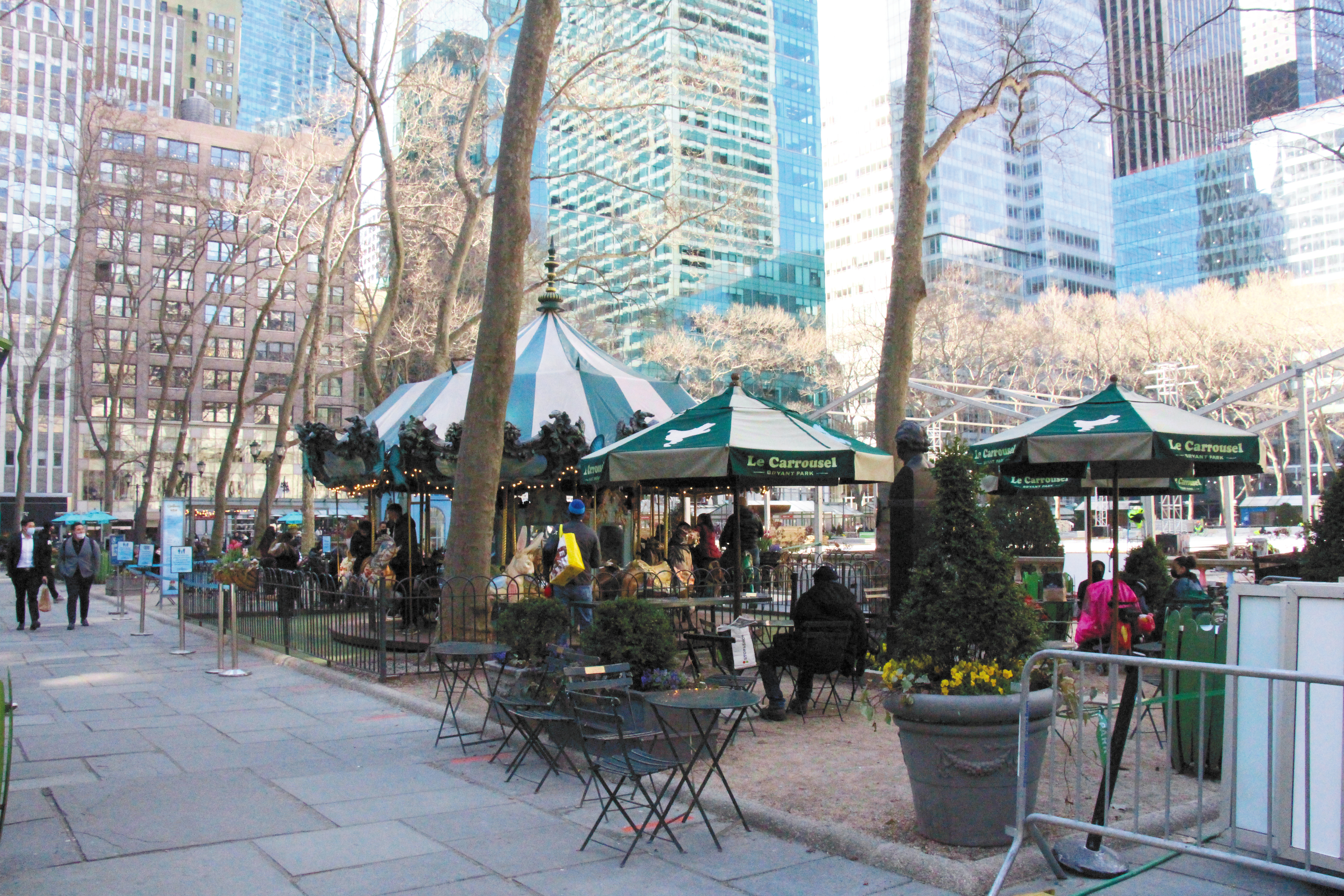 New York’un en sevilen parklarından biri olan Bryant Park, eski şehir meydanı olarak biliniyor ve etrafı gökdelenlerle çevrili. Düzgün bir dikdörtgen şeklindeki parkın merkezinde, çok büyük bir futbol sahasını andıran çim bir alan bulunuyor. Daha önceki gidişlerimde bu çimler üzerinde özgürce oturan, yatmış güneşlenen, çocuklarıyla, köpekleriyle oynayan insanları görüp de yine aynı şeyleri görme ümidiyle gidince, çim alanın kapatılmış olması bende büyük bir hayal kırıklığı yarattı. Sonradan öğrendiğime göre bu yeşil alan, yeni çimlerin kök salması için kapatılmış. Biz yine de parkın içindeki büfelerden birinde kahvelerimize kavuşarak, bir masada yerimizi aldık ve kitap okuyarak, güzel havada epey keyifli bir zaman geçirdik. Oturduğumuz yere yakın olan ve müzik eşliğinde dönen çok renkli atlıkarıncadan neşeli çocuk sesleri yükseliyordu. Kahvelerimizi yenilemek için kalktığımda bir tür fitness yapan bir grupla karşılaştım ve çok özendirici görünüyordu. Parkta bulunan büfelerden istediğiniz tür yiyecek ve içeceğinizi alarak açık havada yemeğinizi yiyebilirsiniz. Öğlen yemeğinizi bu şekilde geçiştirdiğiniz bir günün akşamında, New York’un şık ve güzel restoranlarından birinde yemek isterseniz, Soho’da, Howard Street ile Mercer Street’in kesiştiği köşede bulunan La Merceire çok yerinde bir tercih olur. Roman and Williams Guild adlı mobilya, ev eşyaları ve hediyelik eşyalar mağazasının içinde yer alan bu Fransız restoranı, mağazanın sıcak teşhirinin yanı sıra, çiçekli ağaç dallarının göz aldığı zengin dekorasyonlarıyla harika bir ambiyansa sahip. Mevsimlik ürünlere yer verilen menünün klasiği ise ekmek ve deniz yosunu tereyağı ile servis edilen istiridye. Aynı klasta bir diğer restoran, çok daha klasik tarzıyla farklılık gösteren Harry’s… Lezzetini unutamayacağınız bir et yemek istiyorsanız, New York’un öncü restoranlarından biri olan Harry’s en doğru yerlerden biri. Canınız suşi çektiği bir gün ise, geleneksel suşiye sadık kalarak, yenilikçi ve yaratıcı tarzla ortaya çıkarılmış benzersiz bir menüye sahip Sushi Lab, tecrübe edilmesi gereken bir restoran. Sanctuary Otel’in terasında yer alan, üstü salkım çiçekler, yapraklar ve fenerlerle süslü restoranın, sosyal medyada bolca fotoğrafının paylaşılmasına sebep olan bir güzelliği var.