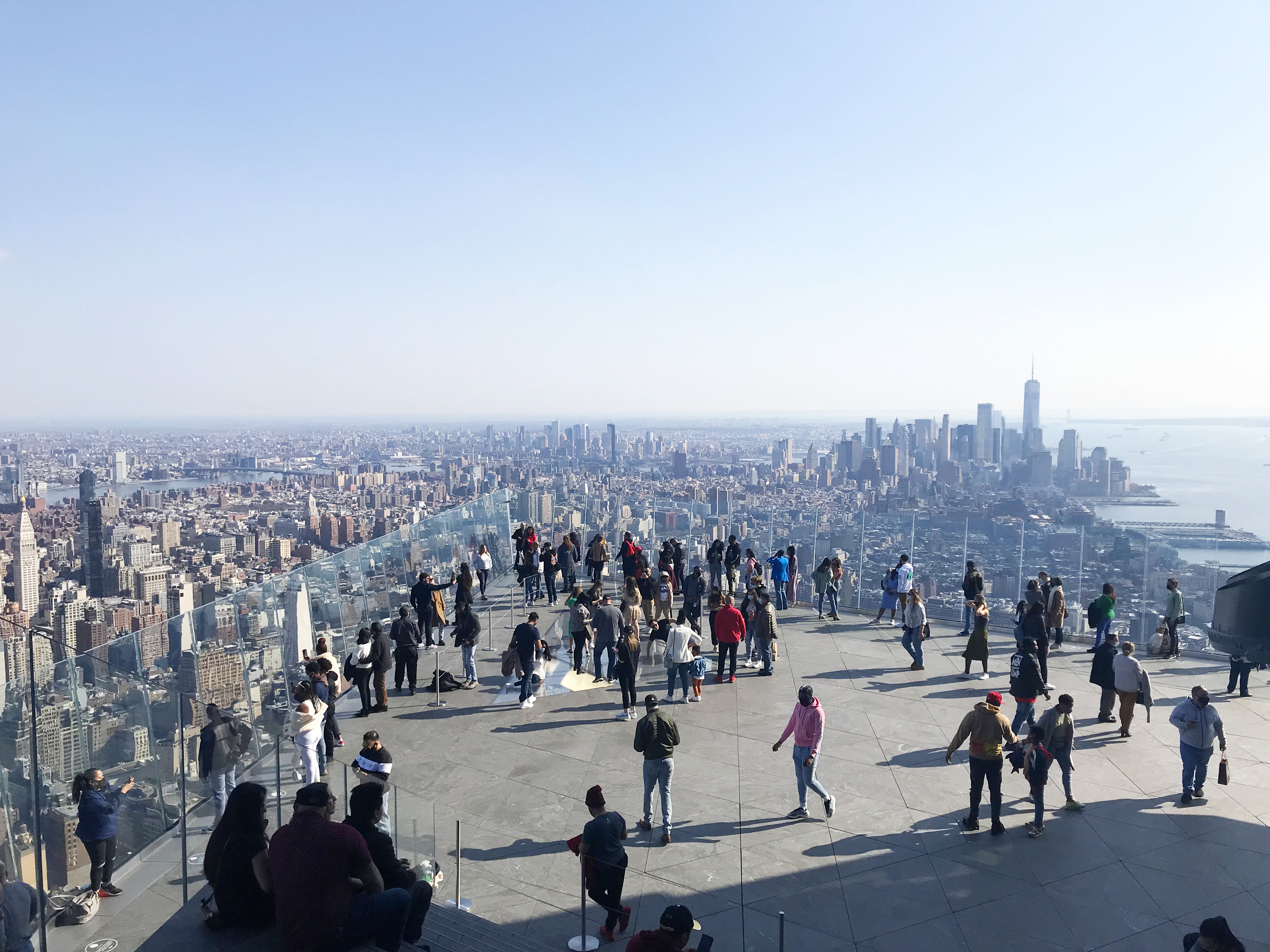 Kızım Deniz’le bir New York klasiğini gerçekleştirmek için bir Pazar gününü seçtik. Şehre tepeden bakmak ve şehrin gökdelenli silüetinin fotoğraflarını çekmek üzere birkaç gün öncesinde internet üzerinden “Edge” biletlerimizi aldık. Eğer gün batımında orada olmak isterseniz biletlerinizi çok daha önceden almanız gerekiyor. 30 Hudson Yards gökdeleninde konumlanan Edge, şu anda Batı yarım kürenin en yüksek dış mekan gözlem terası olma özelliğini koruyor. Ziyaretçilerin güvenlik kontrolünden geçtiği alanda pandemi sebebiyle ekstra önlemler de alınmış. Asansörlere giden koridordaki ses ve ışık efektlerinin içinden geçmek, ziyaretçilerdeki ilk heyecan dalgasını yaratıyor. Korktuğumun aksine, müzik ve görsellerle çıkışın keyifli hale getirildiği asansörlere dörder kişi alınıyor. Üçgen bir platform şeklinde binanın 100. katından çıkan teras hiçbir yerde ulaşamayacağınız 360 derecelik bir açıyla gökyüzünde süzülüyormuşsunuz hissi veriyor. O yükseklikteki cam zeminin üzerinde aşağıya bakarak yürümek nefes kesici. Dışarıya doğru açılı camlarından ziyaretçiler New York’un göz alabildiğine silüetini ve Hudson Nehri’ni farklı açılardan görme şansına sahip. New York’un şehir silüetine bakmanın favori yerlerinden biri olan Empire State Binası da 2020’de açılan Edge’den bakıldığında tüm ihtişamıyla karşınızda dikiliyor. 1931 yılında tamamlandığında, o zamana kadar dünyanın en yüksek binası olan Chrysler Binası’nın ünvanını elinden alan Empire State Binası, dünyanın en ünlü Art Deco gökdelenlerinden biri. New York’un şehir silüetini belirleyen gökdelen, New York tarihinin yaşayan bir parçası ve şehir kültürünün tanınan bir sembolü. Edge’e akşam saatlerinde gittiyseniz günbatımı keyfini güzel bir akşam yemeğiyle sonlandırmak için gökdelenin hemen yanındaki “The Shops and Restaurants” alışveriş merkezinin 5. katında bulunan Yunan Restoranı Estiatorio Milos’a gidebilirsiniz. Biz Edge’den daha erken saatlerde indiğimiz için buradaki akşam yemeğimizi restoranın, günbatımı renklerine boyanmış Vessel manzarası eşliğinde yedik. Türkiye’deki balık restoranları alışkanlığınızı özlerseniz, buza yatırılmış zengin bir balık çeşitliliğinin sergilendiği tezgahı ve muhteşem mezeleriyle Estiatorio Milos beklentinizi layıkıyla karşılayacak bir restoran. Sınırlı ama iddialı tatlı menüsü içinden seçtiğimiz iki tatlıdan ballı yoğurdu daha çok sevdik.