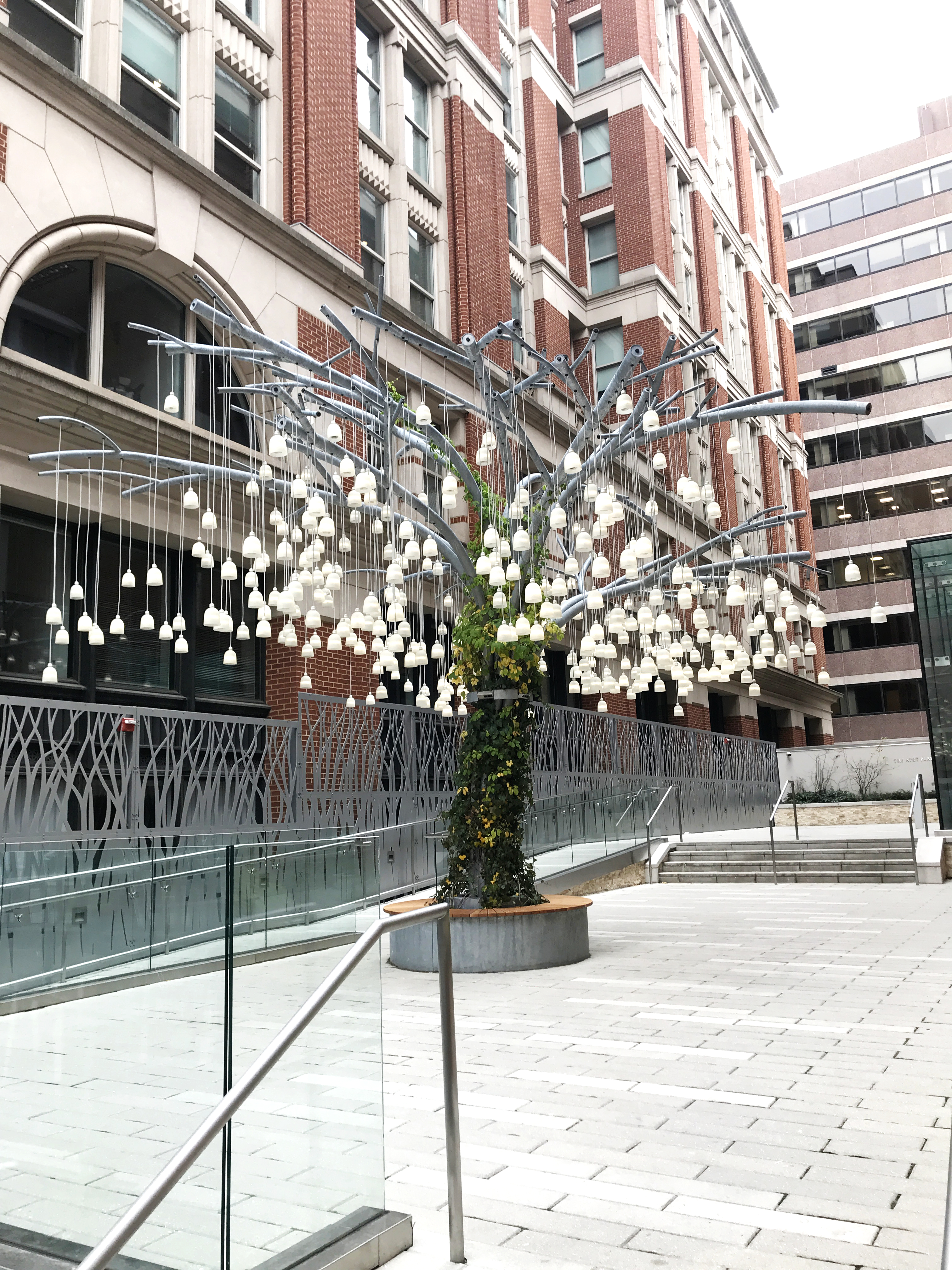 Şehirde en çok fotoğrafı çekilen yerlerden biri de Chinatown Arch (Chinatown Kemeri). Chinatown girişinde bulunan rengarenk kemer, güzel ve ayrıntılı sanatsal işçiliğiyle, Çin’in antik tapınaklarındaki geleneksel mimariyi vurguluyor. Smithsonian American Art Museum (Amerikan Sanat Müzesi), National Portrait Gallery (Ulusal Portre Galerisi) ve Noel zamanı kurulan Downtown Holiday Market in Penn Quarter (Christmas Market) bu bölgede bulunuyor. Bir de şehrin diğer tarafındaki Nationals Park’da (Stadyum) kurulan Enchant Christmas DC, Noel zamanı şehrin en görülmesi gereken yerlerinden biri. Muhteşem bir ışık labirenti ve milyonlarca parlayan ışıkla donatılmış alanda, kendinizi büyülü bir Noel hikayesinin parçası hissedebilirsiniz. Chinatown Arch’dan iki cadde batıya doğru gidince, 10th St NW üzerinde bulunan seçkin alışverişin merkezi Palmer Alley’de, Gucci, Louis Vitton, Bvlgari, Hermès, Dior ve Tiffany & Co. gibi birçok lüks markayı bulmak mümkün. İster açık havada alışveriş yapmak ister yeni görünümlere göz atmak için olsun, gittiğinizde kafeleriyle ve restoranlarıyla çok güzel ağırlanacağınız bir yer. Biraz daha yukarıya doğru yürüyüp, New York Bulvarı’nı karşıya geçerseniz, çok enteresan bir müzeyi ziyaret etme şansınız var. Planet Word, interaktif ve eğlenceli yöntemlerle farklı dillerde öğrenmeyi sunan sürükleyici bir tecrübe yaşatıyor. Ziyaret için rezervasyon yaptırmanız gereken Planet Word, tarihi Franklin Okulu’nda bulunuyor. Ziyaretçileri bahçede ilk karşılayan Speaking Willow (Konuşan Söğüt), dallarından sallanan çan biçimindeki beyaz led ışıklarıyla, yaşamı, bilgeliği ve organik büyümeyi simgeleyen, söğüt ağacı şeklinde interaktif alüminyum bir heykel. Özel yapım hoparlörlerden gelen yüzlerce eşsiz dil kaydı, günümüzde konuşulan benzersiz ancak birbirleriyle ilişkili diler için uygun bir metafor oluşturuyor. Ünlü Fransız Paul Pastaneleri’ni sevenler, çıkışta hemen karşıya geçerek, güzel bir kahve eşliğinde, pastanenin sevilen ürünlerine kavuşabilir. Yürüme mesafesinde çok yakın olmasa da araçla buradan on dakika uzaklıkta olan Meksika Restoranı Republic Cantina, yerel halk tarafından çok iyi bilinen ve rağbet gören bir restoran. İki katlı, tarihi bir tuğla binada yer alan ve çok lezzetli bir Meksika Mutfağı sunan restoranın ambiyansını da çok sevdik.